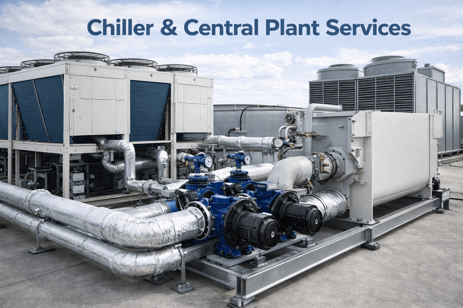 Installation and servicing of air-cooled and water-cooled chillers, cooling towers, pumps, and complete chilled water systems for large commercial and industrial facilities.